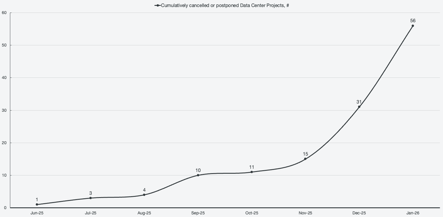 Figure 2: Cancelled or postponed data center projects, cumulative