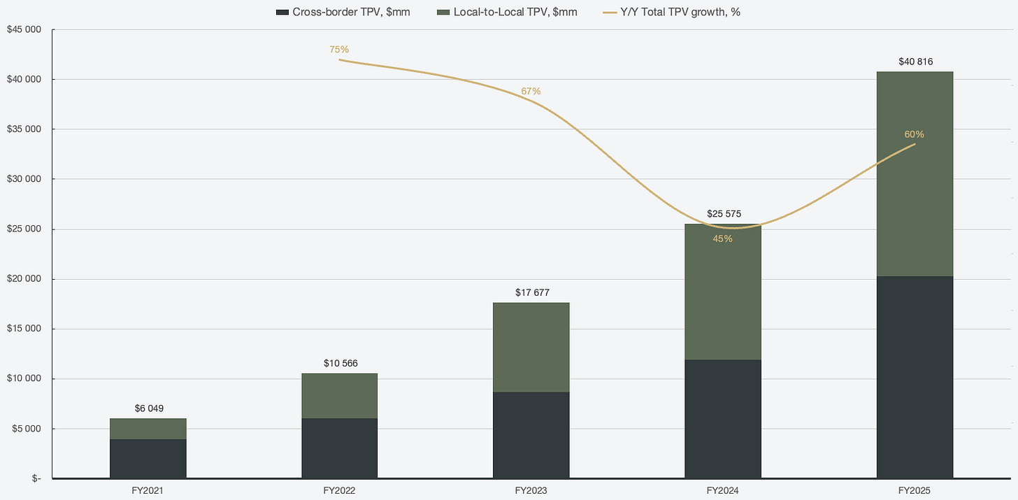dLocal sees structural tailwinds and moats connected to local-to-local and pay-outs specifically, since those flows are harder for global players such as Stripe and Adyen to replicate without dLocal’s local licenses, APM network, and regulatory expertise. Shifting the mix towards that combination will result in stickier local flows and is a core part of dLocal’s “one dLocal” flywheel and differentiation in the EM space.