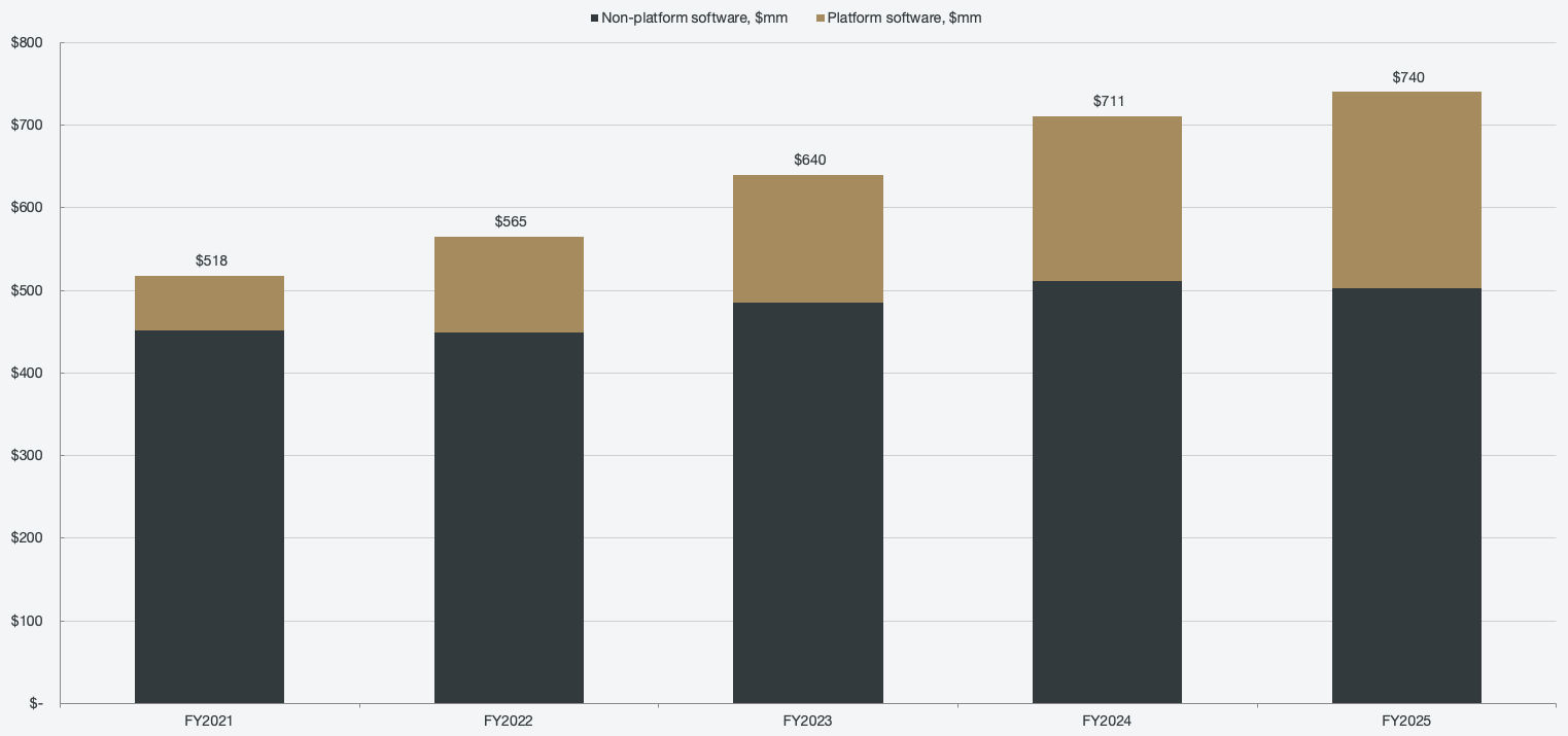 The software segment is divided into platform and non-platform. Non-platform is the legacy solution, which is being phased out for a modern cloud-based decisioning and analytics platform (platform). The FICO Platform is used for assessing credit risk, fraud detection, marketing, and compliance for decision-making. The interesting part is that the FICO Platform can apply advanced analytics and AI to execute real-time rule-based decisions and workflows (creating simulations and feedback loops). This part of the business in particular saw a major announcement a few days ago at the time of writing.