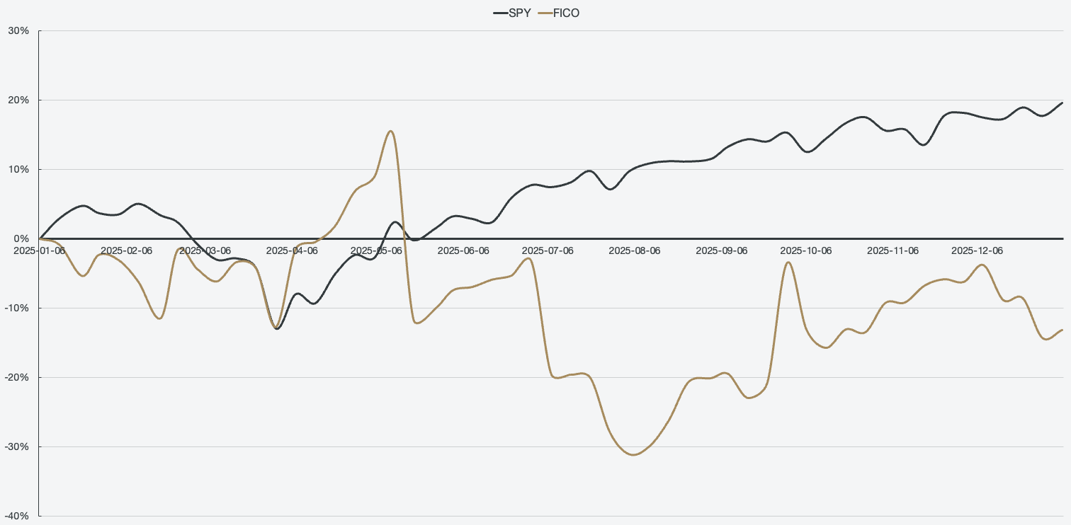 2025 was a year where FICO’s stock quote tumbled against the S&P 500 index, after outperforming massively over prior years. The quote peaked in December of 2024, at ~$2400 per share, and has since normalized in the ~$1500-1600 range. This has allowed fair intrinsic value to catch up, allowing more prudent investors a chance to purchase FICO under fair intrinsic value.
