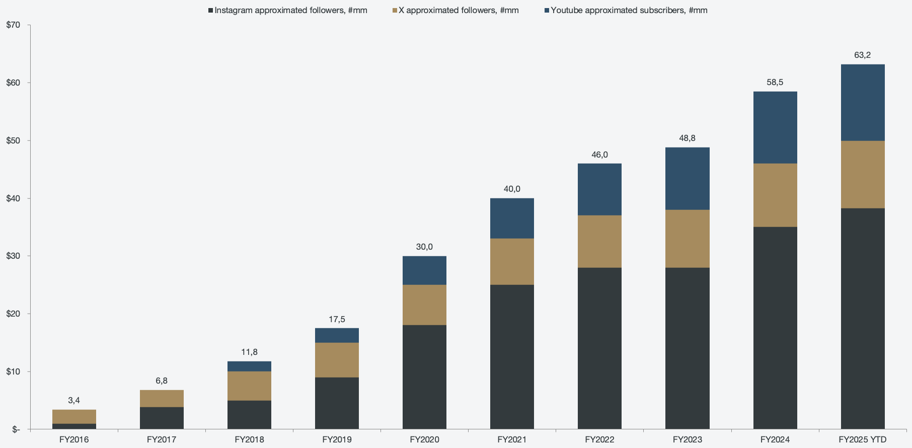 Figure 6: F1 social media following approximations