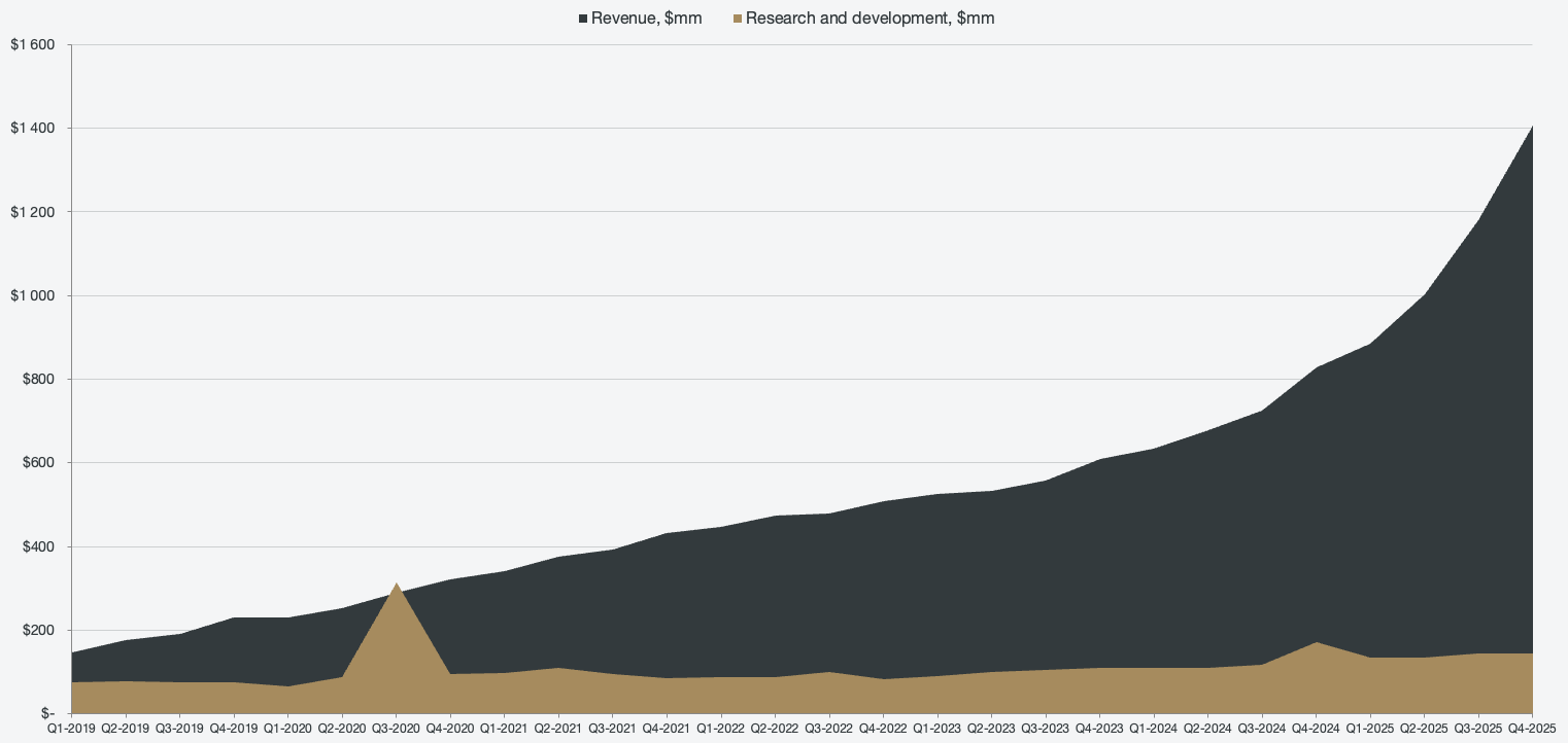 In addition, stock-based compensation as a percentage of revenues has dropped significantly and continues to trend downwards. As of Q4 2025, the SBC as a percentage of revenues is at 14%, which is significantly below the average for the SaaS peer group (around 23%).