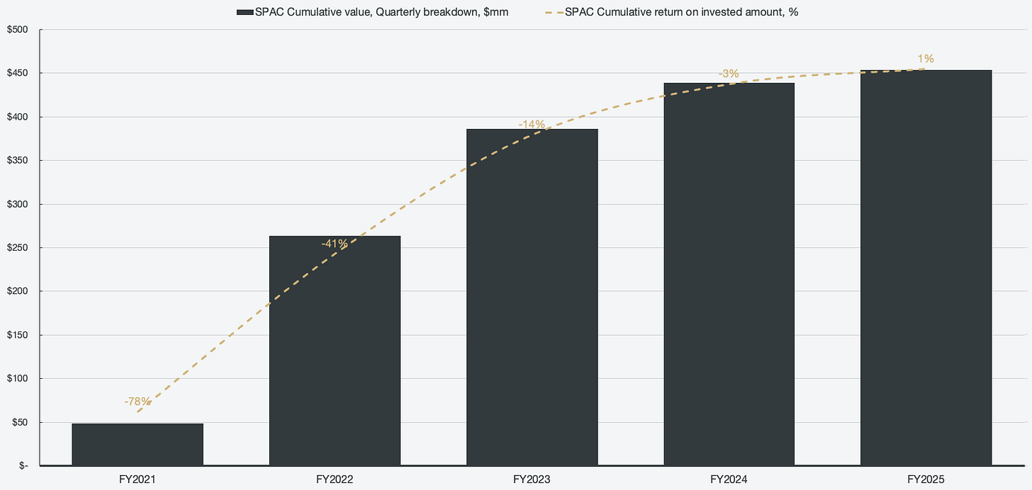 Figure 1: Cumulative SPAC value and return on invested amount