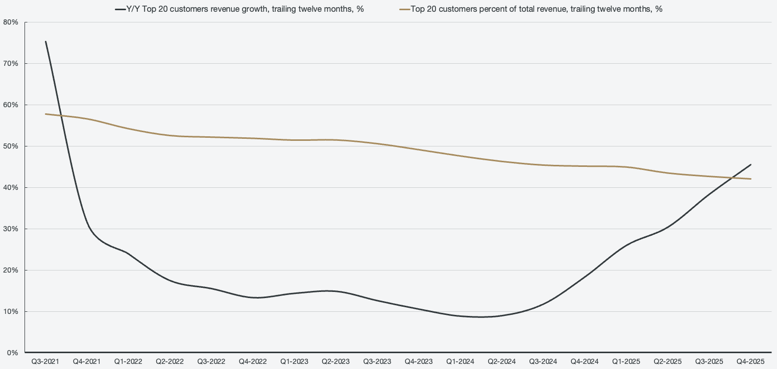 Figure 9: Top 20 customers growth and percent of total revenue, trailing-twelve-months