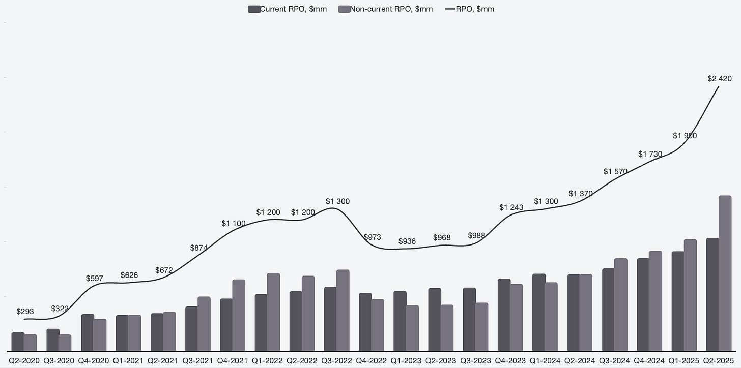 By reviewing the contract balances, it is clear that the business is still in an acceleration phase and shows no signs of stopping anytime soon. The future revenue recognition pipelines look sustainable and healthy as per Q2 2025.
