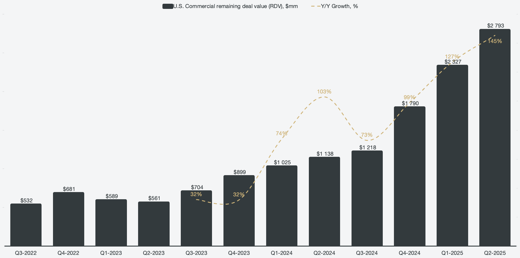 Of the $7.1 billion of total remaining deal value, $2.8 billion came from the U.S. commercial segment, which grew 145% Y/Y. It’s an impressive chart that showcases the sheer acceleration in the U.S. commercial segment, growing at or above ~100% for three quarters in a row.