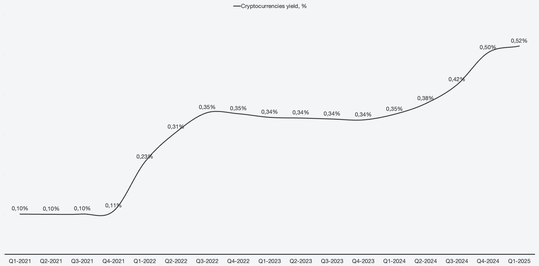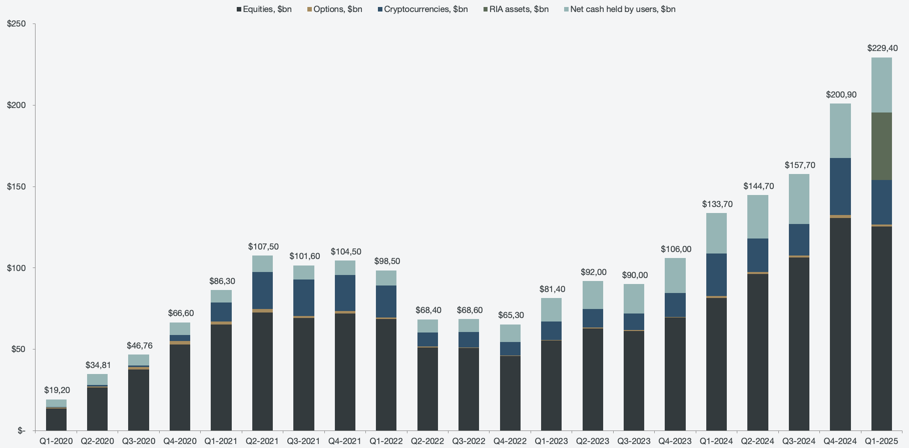 In 4 years, Robinhood has managed to grow the take-rate of cryptocurrencies by more than 400%, showcasing immense pricing power. As a reference, Coinbase (NASDAQ:COIN) has a 1.4% take rate on its consumer-facing cryptocurrency trading segment. This means that Robinhood is a cheaper alternative for users by far and has a long way left to scale its yield before competitive pressures appear. As of Q1 2025 earnings results, Coinbase recorded $78 billion in consumer trading volume, compared to $46 billion for Robinhood. Coinbase focuses solely on cryptocurrencies and offers a far wider range of currencies compared to Robinhood, which makes the volume comparison impressive for Robinhood.